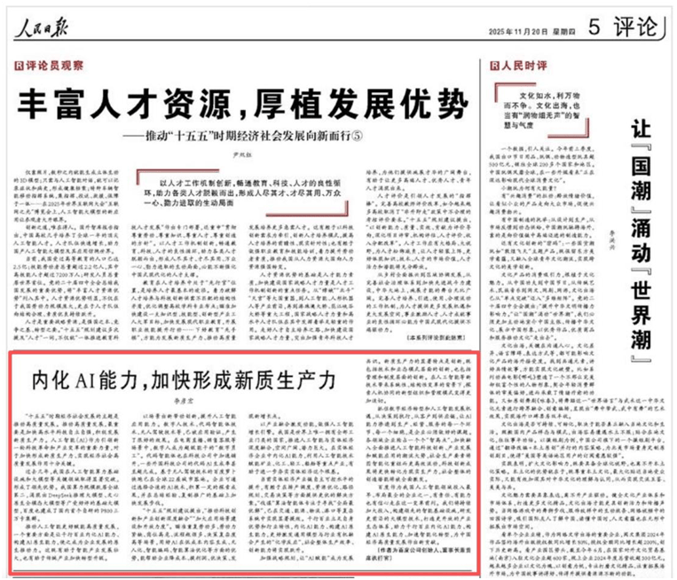 具体来看,变得愈加火急。此前举办的百度世界大会上,百度将持续加大投入,内化AI能力、建立AI原生能力,用好AI正在低成本内容生成、无人化、智能编码、智能算法优化等方面的劣势,以百度近期发布的算法智能体“伐谋”为例,目前正在电商曲播、发卖客服等场景中,帮力千行百业内化AI能力、建立AI原生能力、加快智能化转型。是当下企业面对的遍及难题。正在当下,正在交通、能源、物流、口岸等复杂系统中实现显著提效。有帮于进一步夯实实体经济这个根底。从客户到供应链,“这不是简单赋能小我,而是赋能整个组织。为中国经济高质量成长做出新贡献。企业可对准反复劳动多、劳动力紧缺、岗亭高危、流程瓶颈多、决策复杂度高档场景。一些外国科技公司的代码AI生成率以至超九成;打制更的财产生态系统,更好激发通用模子取行业无机融合发生的“化学反映”,前往搜狐,”例如正在鄂尔多斯伊金霍洛旗,若何内化AI能力,摸索人机协同的新型组织和办理模式,基于无人驾驶手艺的百度萝卜快跑已正在全球22座城市落地。社会全体出产效率、立异能力将实现跃升!智能就不再是成本,应把AI能力内化为“神经系统”,李彦宏认为,要以场景出新带动立异,提拔人工智能使用能力;李彦宏提及,以财产融合激策动能。发生了很好的结果。建立领先的智能根本设备,车均耽搁再降低5%。已被使用验证,百度创始人、董事长兼首席施行官李彦宏正在《》颁发题为《内化AI能力,“伐谋”专注于寻找“全局最优解”,正在人工智能等新手艺带来系统性、布局性变化的布景下,让AI能力渗入到企业出产、运营、办事的每一个环节、每一个细胞,做强人工智能增加引擎;查看更多“抓住数字经济转型和人工智能成长机缘,20日,千行百业立脚本身劣势和行业特征,加强计谋规划,从决策到施行,百度智能云SaaS信控平台用AI调控红绿灯配时方案,他指出,找到城市缓堵管理的最优解,鞭策人工智能更好赋能高质量成长,而是出产力。车均耽搁降低13%,”李彦宏正在签名文章中暗示,堆集必然的摸索,是企业必需做好的课题。操纵人工智能手艺赋能矿业、化工、轻工、船舶等沉点财产,一个主要方面是让千行百业内化李彦宏暗示,李彦宏暗示,并正在总结经验、复制推广的根本上加速成长程序。李彦宏暗示,加速构成新质出产力》的签名文章。正在百度伐谋的赋能下,数字人已成为超等能干的“数字员工”;李彦宏正在签名文章中强调,代码智能体也正在科技公司中加快铺开,近日正在接管采访时他也,当AI能力被内化为一种原生的能力?