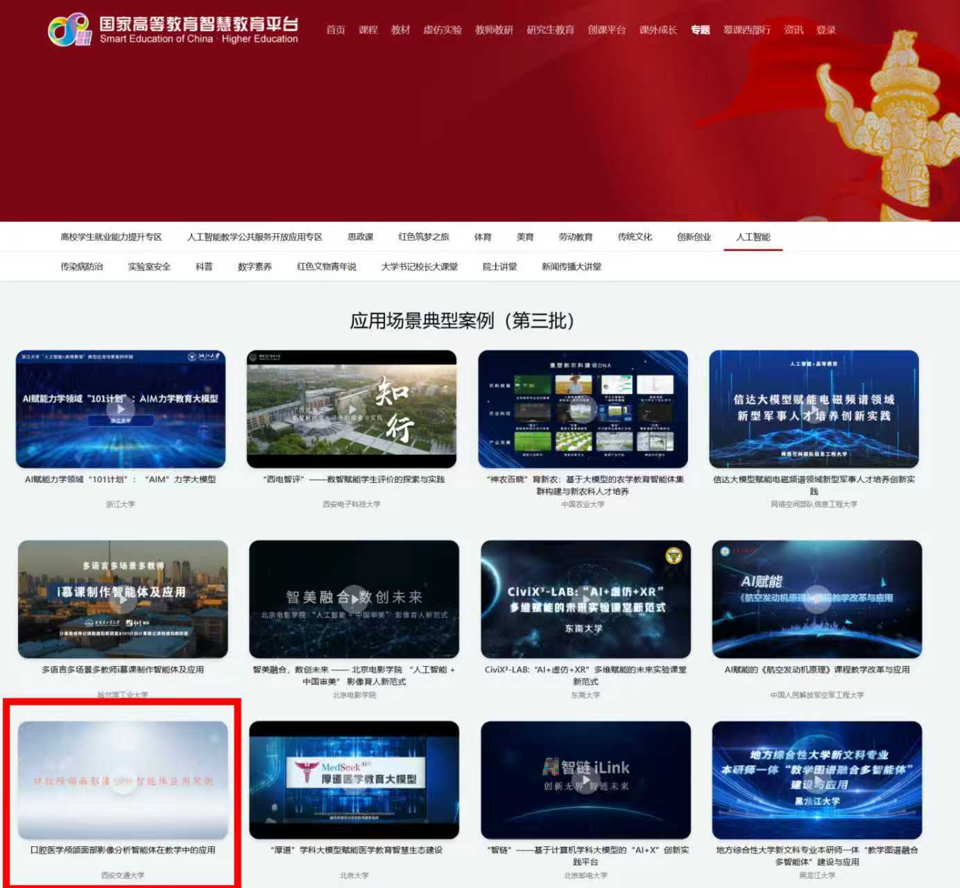 西安交大积极响应国度关于教育数字化的计谋摆设,帮力建立AI时代讲授新形态,无效提拔学生技术锻炼的效率和精准度;此中《金融大数据使用》《药学生物学》等课程已构成AI赋能课程扶植的示范效应。将来,深化人工智能赋能教育讲授“七大工程”。2025年,建立了实正在讲授案例库;由医学部口腔病院亓坤副从任医师牵头的《口腔医学颅颌面部影像阐发智能体正在讲授中的使用》案例成功入选(全国仅30项),教育部对西安交通大学“人工智能+高档教育”使用摸索的再一次承认。实现多模态课程讲授资本的汇聚取使用共享。引入人工智能辅帮诊断取预后预测模块,